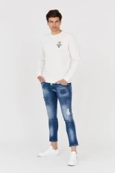 Men's white sweatshirt with embroidered logo.