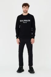 Czarna męska bluza Printed Sweatshirt marki BALMAIN z białym logo.