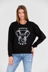 Czarna damska Bluza VARSITY JUNGLE' ELEPHANT EMBRO, marki KENZO.