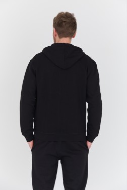 Black men's Aldwin Zip unbuttoned sweatshirt, by Guess.