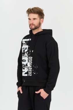 Black men's Icon Splash Cool Fit Hoodie, by Dsquared2.