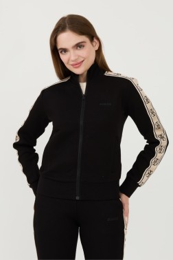 Black women's Britney Full Zip sweatshirt, by Guess.