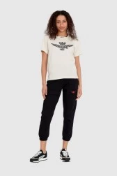 AERONAUTICA MILITARE Cream loose fit women's eagle embossed t-shirt Comfort Fit