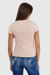 GUESS Women's peach t-shirt with glitter logo