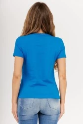 GUESS women's T-shirt in blue color. Printed on the front with a large triangular logo.
