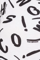 MOSCHINO SWIM women's T-shirt in white with black letters and the company logo. Round ribbed neckline in black.