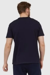 Men's T-shirt in dark navy blue color with white large logo. Round, ribbed neckline.
