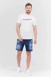 Men's DIESEL t-shirt in white. Features a logo on the front. Round, ribbed neckline.