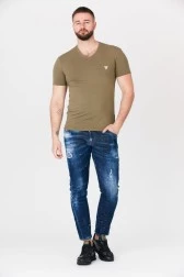 GUESS Khaki men's v-neck t-shirt with elastane