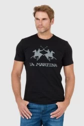 LA MARTINA Black men's t-shirt with grey logo