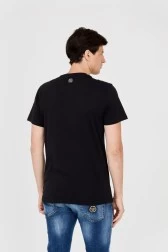 Men's black T-shirt with rectangular logo embellished with rhinestones.