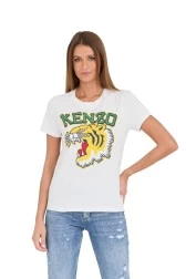 White women's Tiger Varsity crewneck t-shirt, by KENZO.