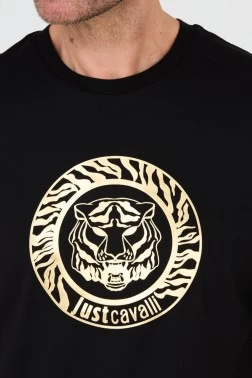 JUST CAVALLI Black T-round Gold T-shirt