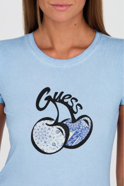 GUESS Blue t-shirt with print and zircons