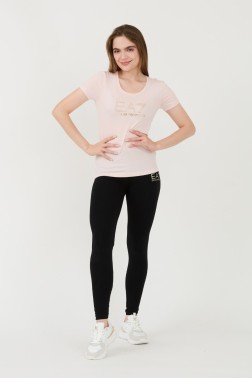 Pink women's t-shirt with zircons, by EA7 Emporio Armani.