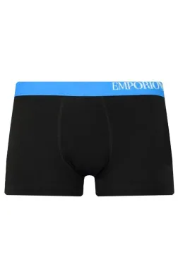 Black boxer shorts in fine cotton smooth knit with added elastane from Emporio Armani. Rubber band with the brand's logo.