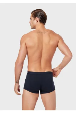 Emporio Armani Underwear boxer shorts made of fine, smooth cotton knit with added elastane, in navy blue. Rubber with the brand's logo in blue, navy and yellow.