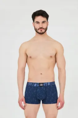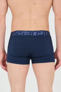Men's boxer shorts with elastic in 2x navy blue and 1x white.