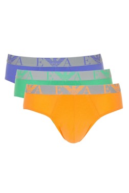 Men's 3PACK BRIEF underwear set by Emporio Armani. The box includes briefs in green, orange and purple.