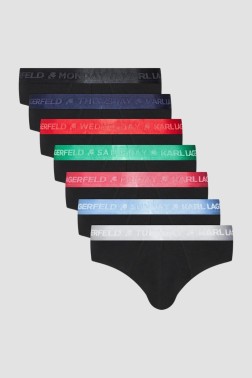 A set of men's 7PACK underwear by Karl Lagerfeld. The box includes briefs in black.