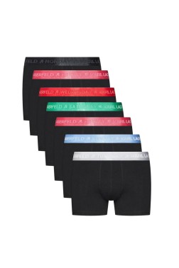 Set of seven black Day Of The Week Trunk boxer shorts, by Karl Lagerfeld, with colored elastics.