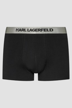 Set of three Metallic Elastic Trunk Set 3PACK boxer shorts, by Karl Lagerfeld. The box contains boxer shorts in black, black, white.