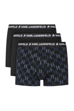 A set of black 3PACK Aop Monogram Trunk boxer shorts, by Karl Lagerfeld.
