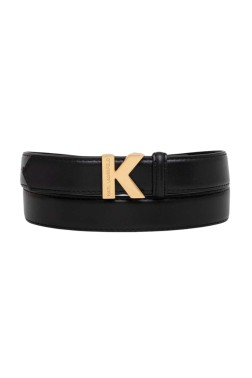 Women's black K/lock Sm Belt by Karl Lagerfeld. Belt width 2,5 cm, gold buckle.