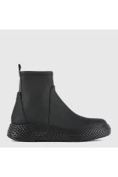 Women's EMPORIO ARMANI sneakers in black. White logo ribbon on the back. Zippered at the side. Thick sole with an interesting texture. Made of flexible, high-quality extralight plastic.