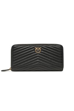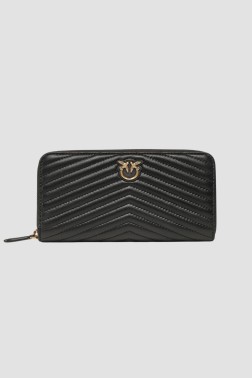 Women's Ryder Zip Around quilted wallet by Pinko. Made of genuine leather, with a zippered closure, it features eight card compartments and one zippered coin pocket. Packaged in a branded box.