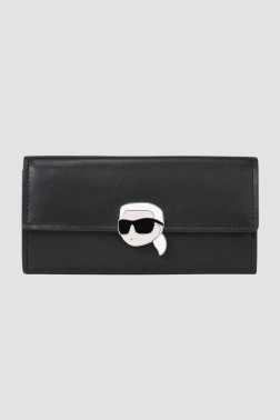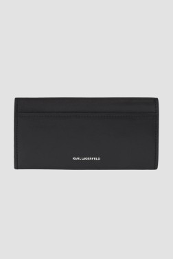 Women's leather K/iconic wallet by Karl Lagerfeld. Magnetic closure, inside zipped coin pocket, 2 compartments, 6 card slots and 1 slip pocket. On the outside one slip pocket.