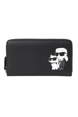 Women's leather K/iconic 2.0 wallet by Karl Lagerfeld. Zippered closure, inside zippered coin pocket, 2 compartments, 12 card slots and 2 slip pockets.