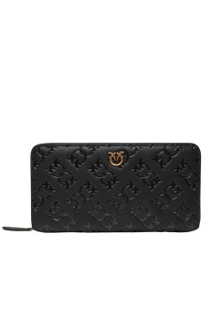 The women's Ryder Zip Around wallet by Pinko is an elegant accessory that combines functionality with modern design. The wallet closes with a zipper and features an internal zippered coin pocket, four compartments, six card slots and two slip pockets. The entire item is neatly packaged in a branded box.