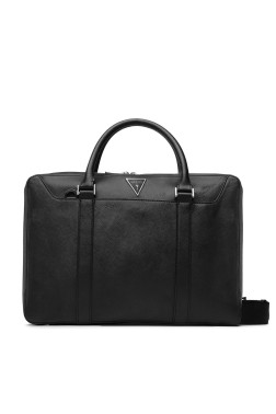 Czarna aktówka "Parma Doc Case W Hndl" marki Guess. Aktówka posiada 1 komorę i 7 kieszeni: 4 wsuwane oraz 1 zasuwana, do tego 8 miejsc na karty. Na zewnątrz znajdują się 2 kieszenie zamykane na magnes. W zestawie pasek regulowany 140 cm oraz worek przeciwkurzowy.