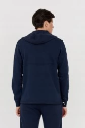 Granatowa bluza męska z kapturem i kieszenią kangurką.