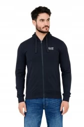 Granatowa bluza męska z kapturem zapinana na suwak.