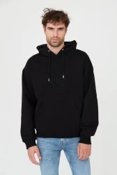 Męska czarna bluza z kapturem i haftowanym logo marki JUST CAVALLI.
