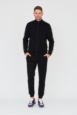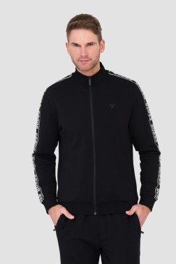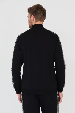 Czarna męska bluza dresowa, rozpinana bez kaptura, marki Guess.
