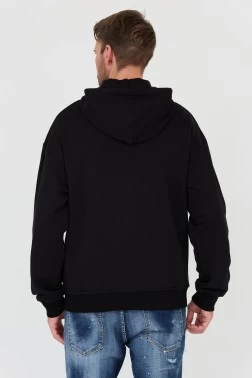 Czarna męska bluza z kapturem, rozpinana, marki Just Cavalli.