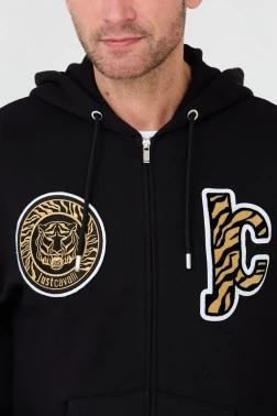 JUST CAVALLI Czarna bluza z kapturem Mix Patches