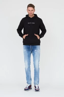 Czarna męska bluza z kapturem, marki Tommy Jeans.
