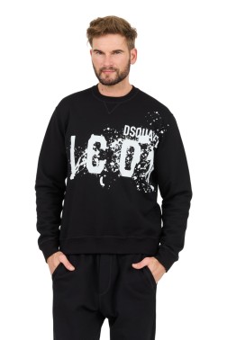 Czarna męska bluza Icon Splash Cool Fit Crewneck, marki Dsquared2.