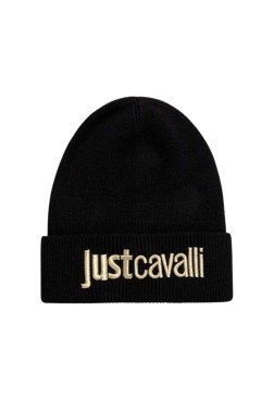 Czarna czapka marki JUST CAVALLI. Z przodu haftowane logo. Rozmiar uniwersalny.