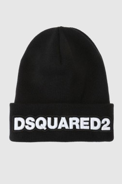 DSQUARED2 Czarna wełniana czapka z haftowanym białym logo