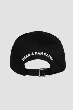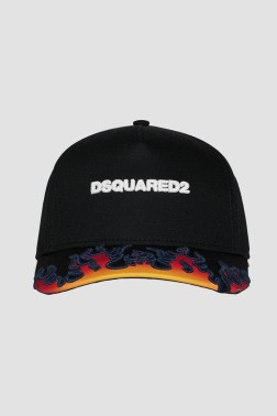 DSQUARED2 Czarna czapka z daszkiem w płomienie