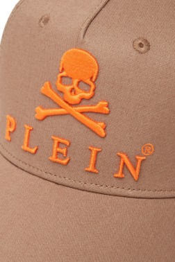 PHILIPP PLEIN Brązowa czapka z daszkiem Skull&Bones