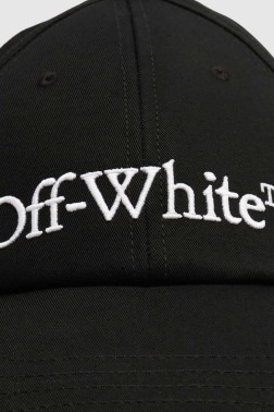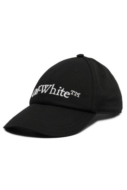 Czarna czapka z daszkiem z haftowanym dużym logo marki Off White.
