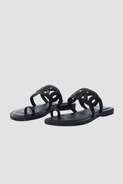 Czarne damskie klapki Alma Flat Sandal, marki Michael Kors.