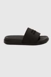 Klapki męskie w kolorze czarnym z trójwymiarowym logo.