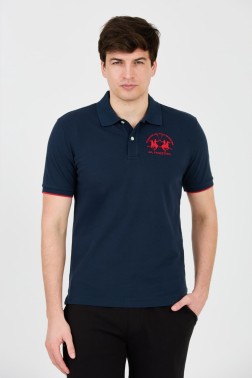 LA MARTINA Granatowe polo z dużym czerwonym logo